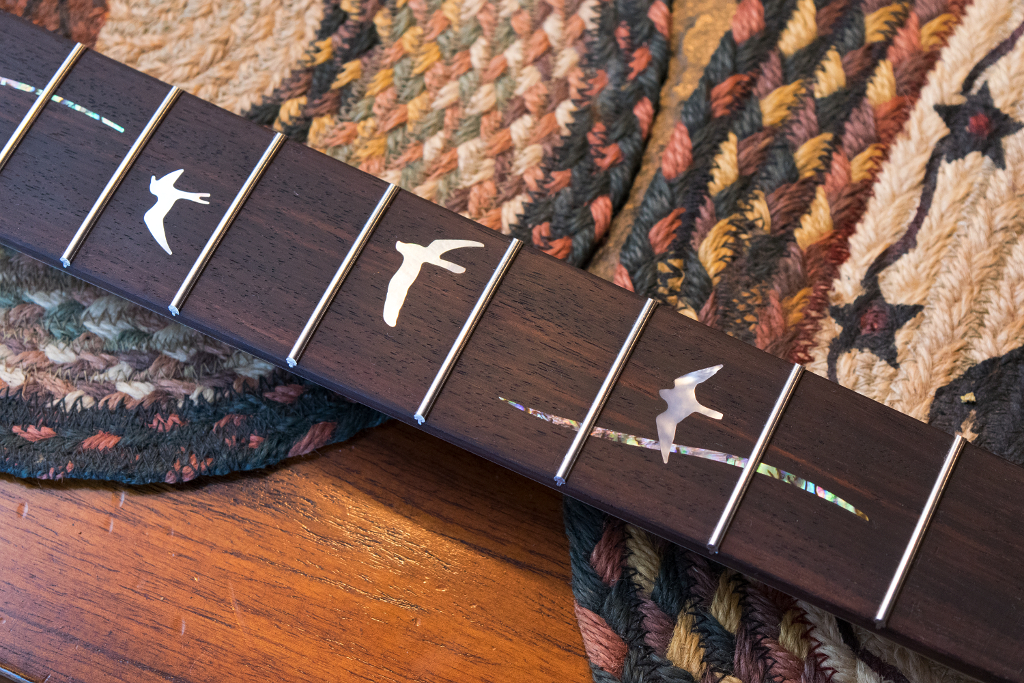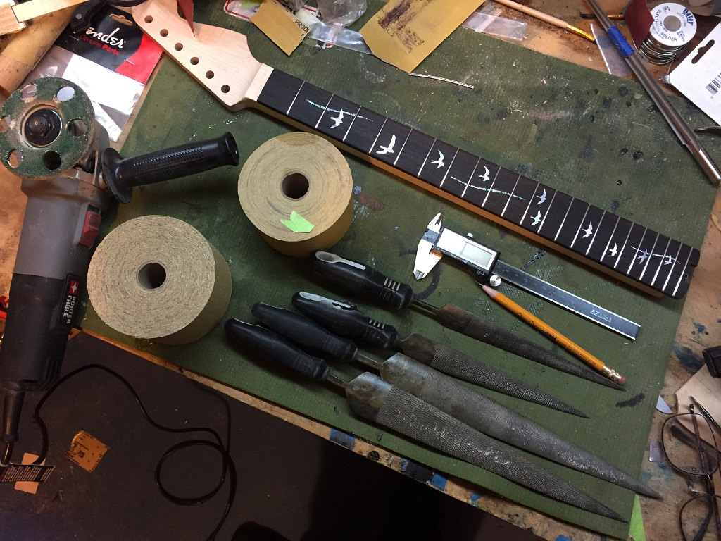 these are still sharp on the ends, but one of the final steps in the build is to level, crown, and polish the frets. This will leave the entire fret smooth, including the ends. Also note, I’ve rolled over the hard corners of the fretboard. This makes the neck feel a lot more comfortable in your hands while playing.
